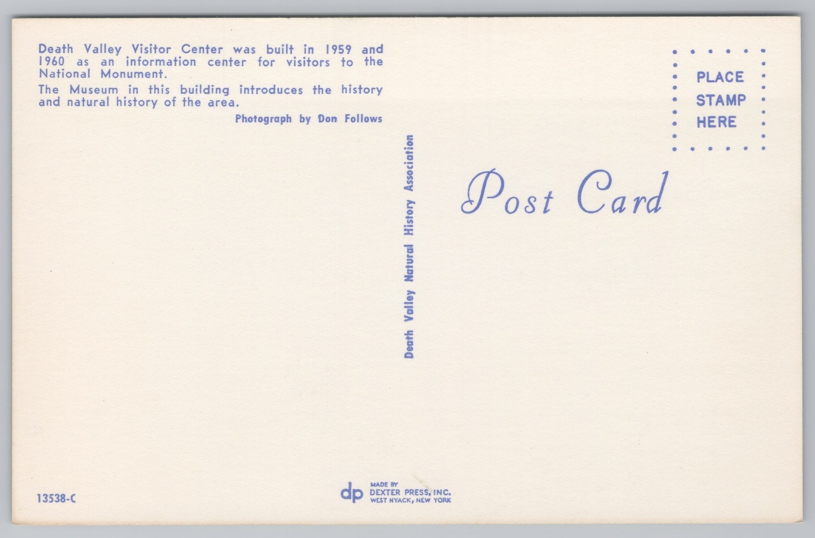 Death Valley Visitor Center~National Monument~Dexter Press Co~Vintage Postcard
