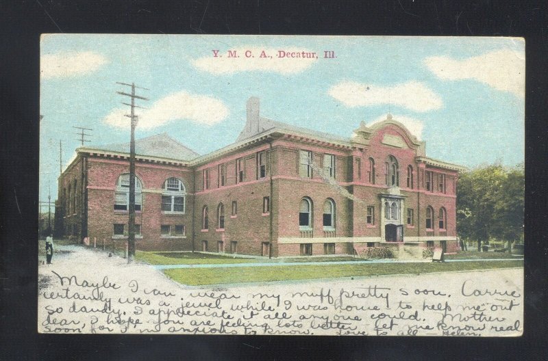 DECATUR ILLINOIS YMCA BUILDING 1910 VINTAGE POSTCARD HEALD ;EORIA ILL.