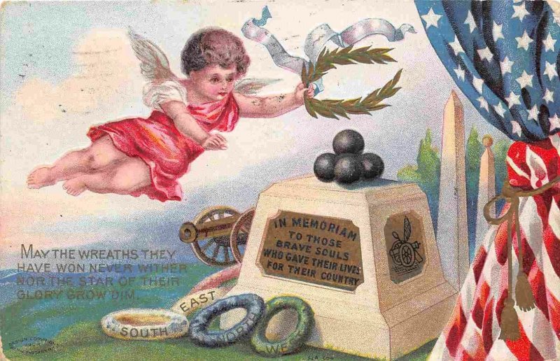 Decoration Day Memorial Cherub Stars & Stripes Flag Greeting 1909 postcard