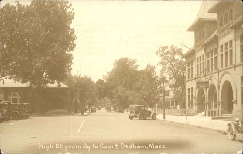 Dedham MA High St. From Square c1930 Real Photo Postcard