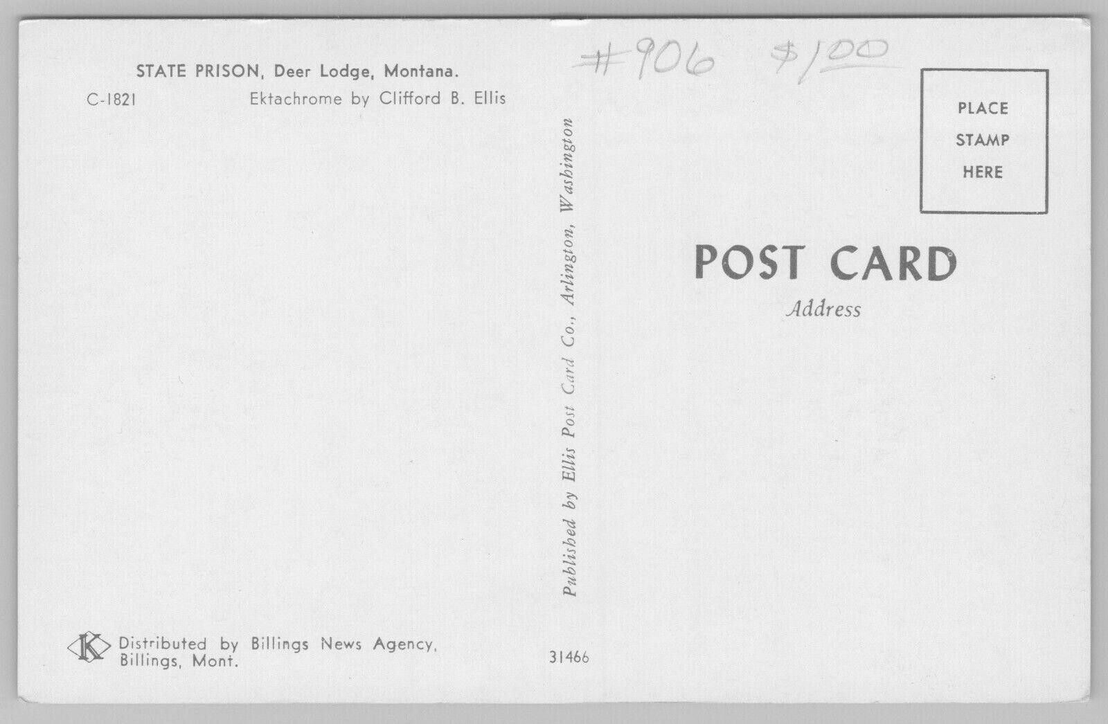 Deer Lodge Montana~State Prison~Castle Towers~1950s Cars~Postcard