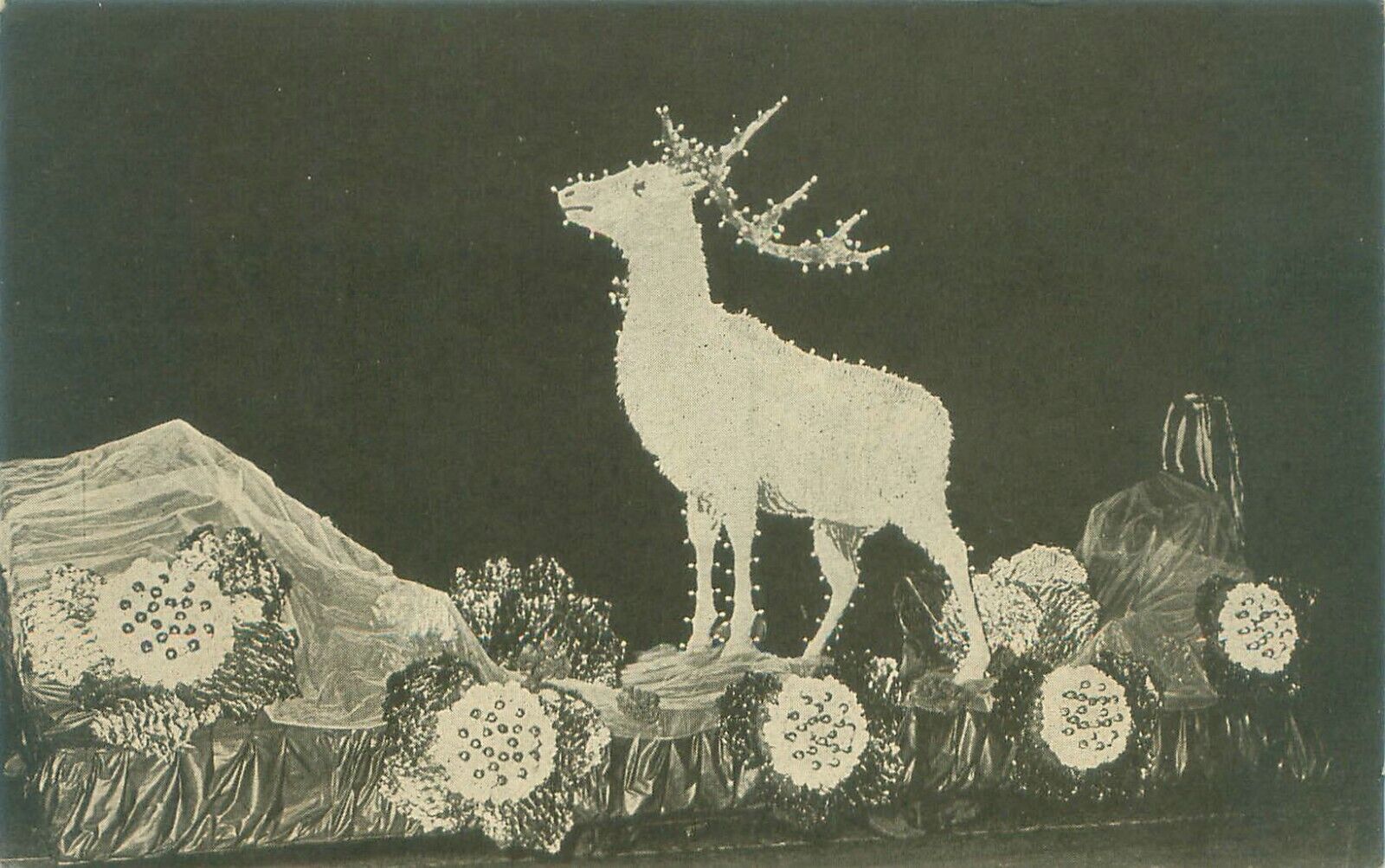 Christmas Float, Deer With Lights B&W Postcard Ships fast.