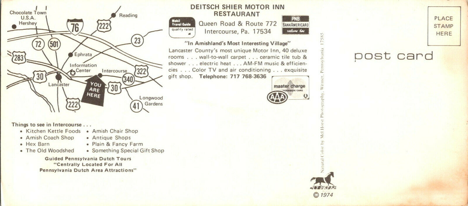 Deitsch Shier Motor Inn RestaurantIntercourse, PA Pennsylvania Panoramic View PostcardReasonable Offers Always ConsideredPlaced Between 2 Pieces of CardboardShipped USPS First Class MailNon Machinable-Marked Do Not BendCombined Shipping AvailableQuestions WelcomedVisit my store Darrel's Vintage Deals