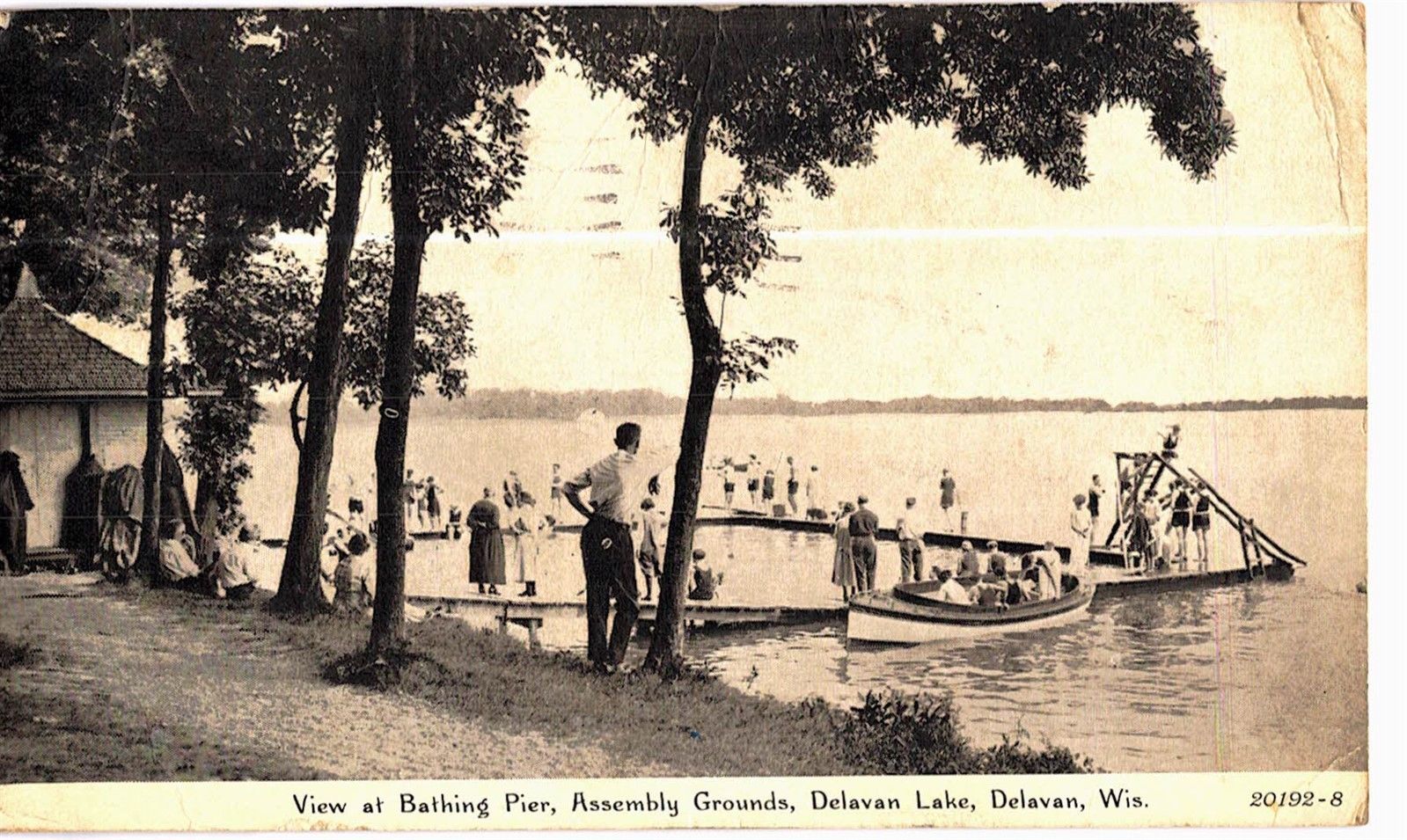 Delavan Lake View At Bathing Pier Assembly Grounds 1929 WI