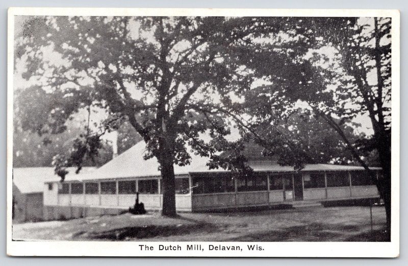 Delavan Wisconsin~The Dutch Mill~Lake Front Dancing Pavilion~1920s B&W Postcard