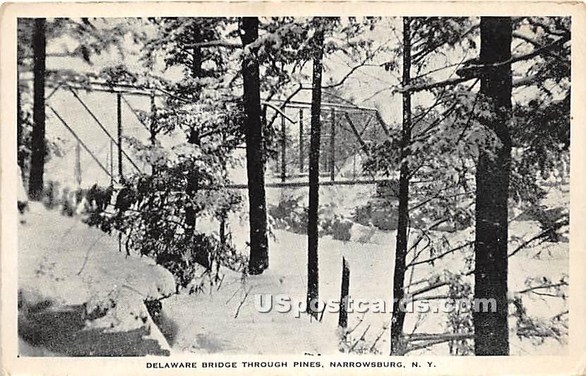 Delaware Bridge Through Pines - Narrowsburg, New York Postcard - Unused Grade: 3 Size: R - Regular size: Approx 3 1/2 X 5 1/2 inch (9 cm X 14 cm) Grading Scale: Grade 1 = Perfect corners Grade 2 = Very Minimal ... Read More