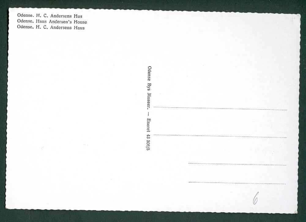 Denmark Postcard. H.C. Andersens House. Odense See 2 scan. Card: Unused. Publisher: Odense Museum # 43 508/5.