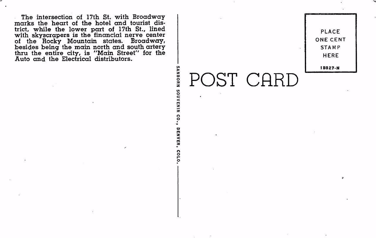DENVER, CO Colorado SEVENTEENTH ST & BROADWAY Brown Palace c1940's Postcard