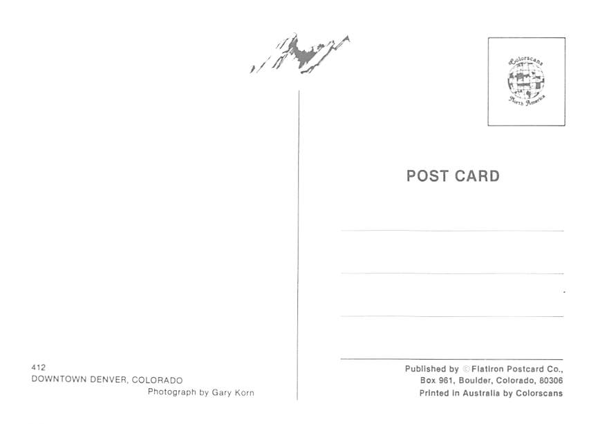 Denver - Colorado Grade: 1 Category: Continental Size Postcard, Approx 4 in x 6 in (10 cm x 15.25 cm) Product Size: Continental size: 4X6 inches (10.5 cm x 15 cm) Grading Scale: Grade 1 = Perfect corners Grade ... Read More
