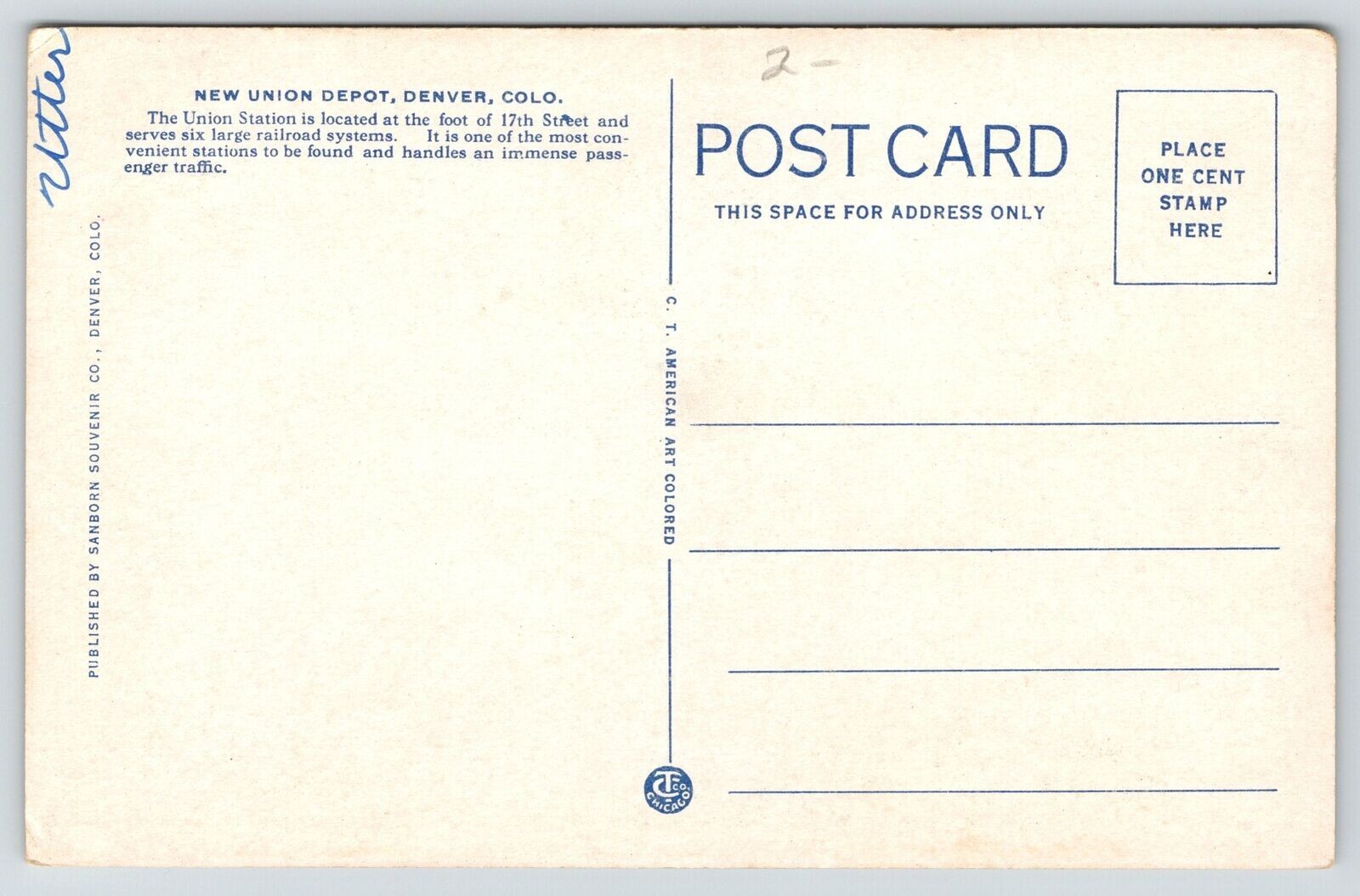 Denver Colorado~New Union Depot~Passenger Train Station~Arch Side View~1921