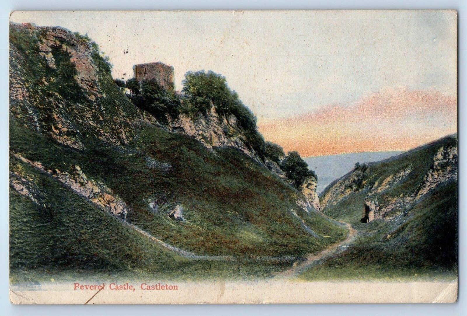 Derbyshire England Postcard Peveril Castle Castleton 1907 Antique Posted