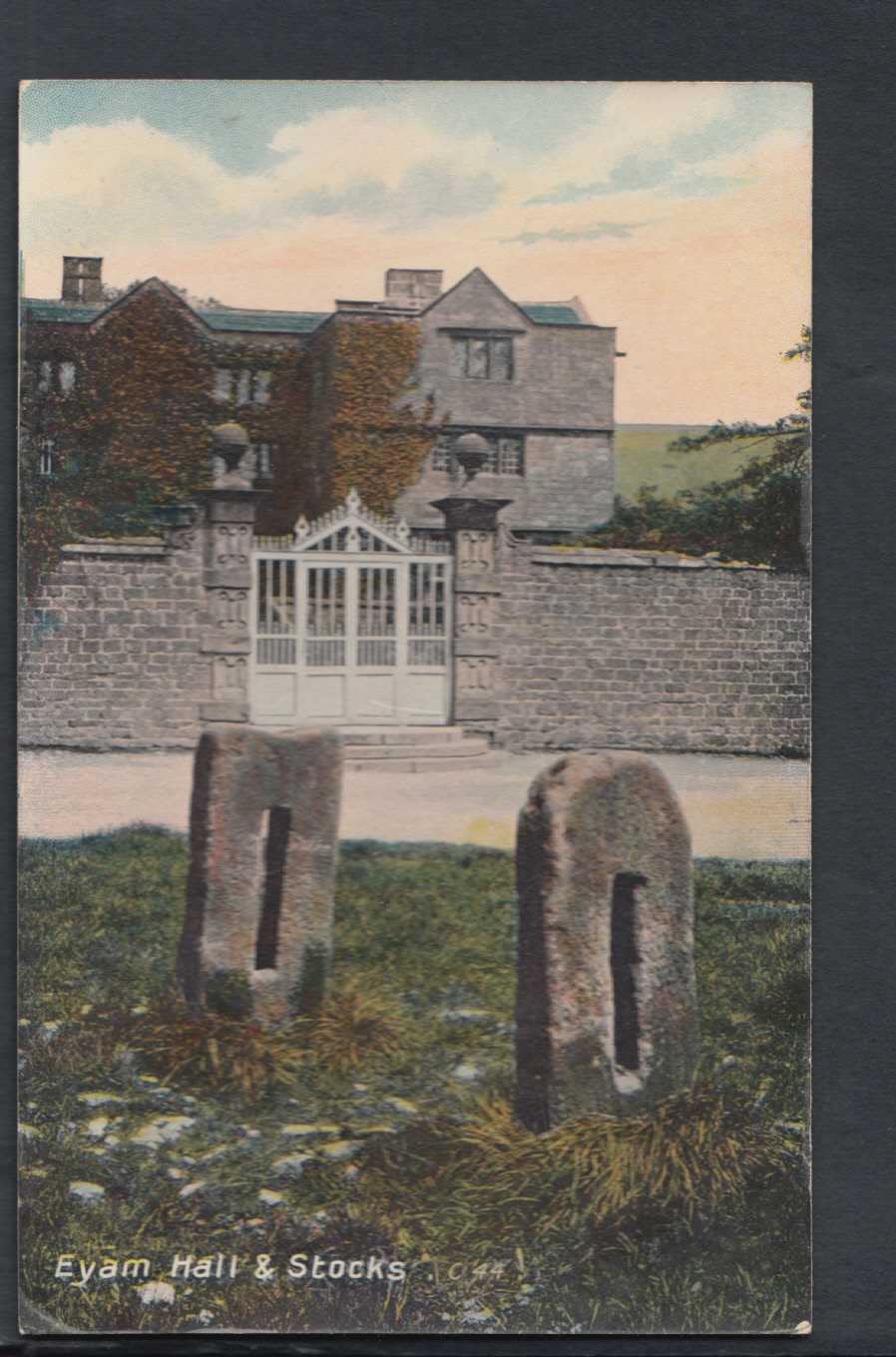 Derbyshire Postcard - Eyam Hall and Stocks HM50