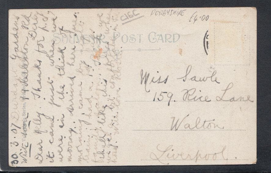 Publisher: Valentine's Defects: No stamp and slight curved crease just below the word Derby Size: Standard. Posted in 1907 Ref: SW2052