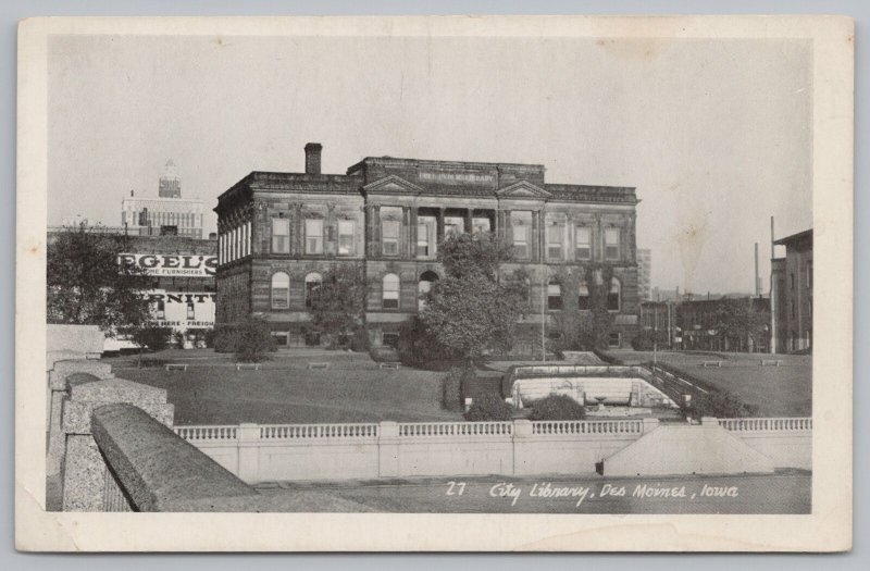 Des Moines Iowa~City Public Library~Limestone Beaux-Arts~Double Staircase~1950s