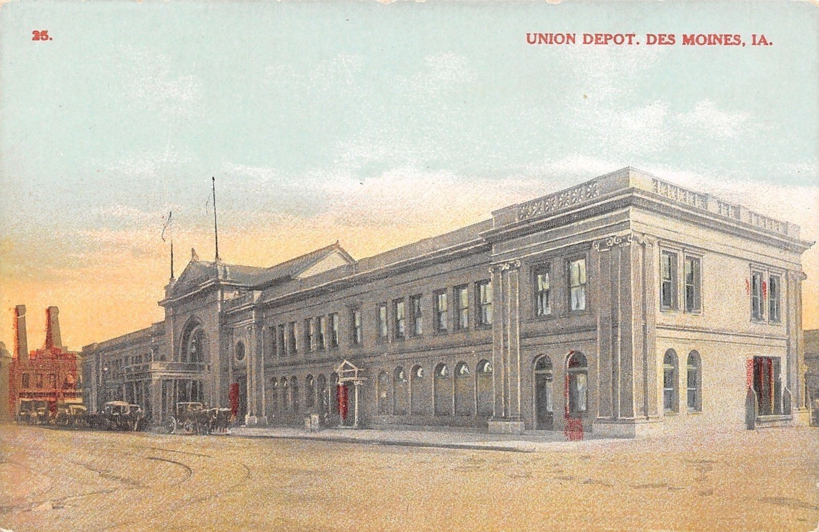 Des Moines Iowa~Union Railroad Depot~1910 Postcard
