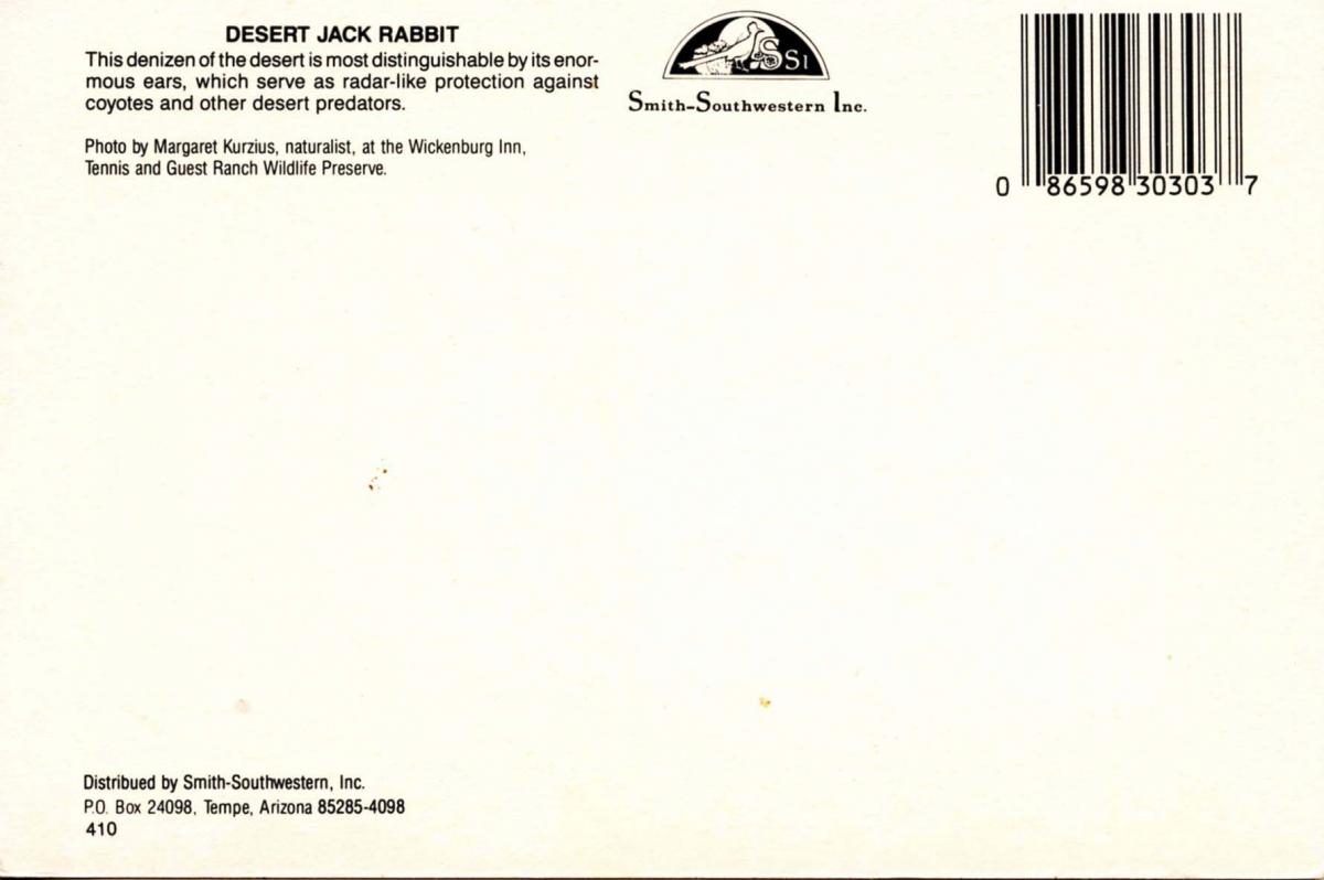 Desert Jack Rabbit in Arizona --- Have a great day! Grading of Postcards MINT (M): Perfect condition, no apparent blemishes, flaws, postally unused, may have some writing on back. NEAR MINT (NM): Like new, image i ... Read More