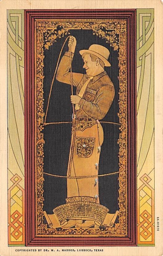 Designed By W.A. Maddox Will Rogers Art Lubbock, Texas USA Postcard - View Postcard Backing