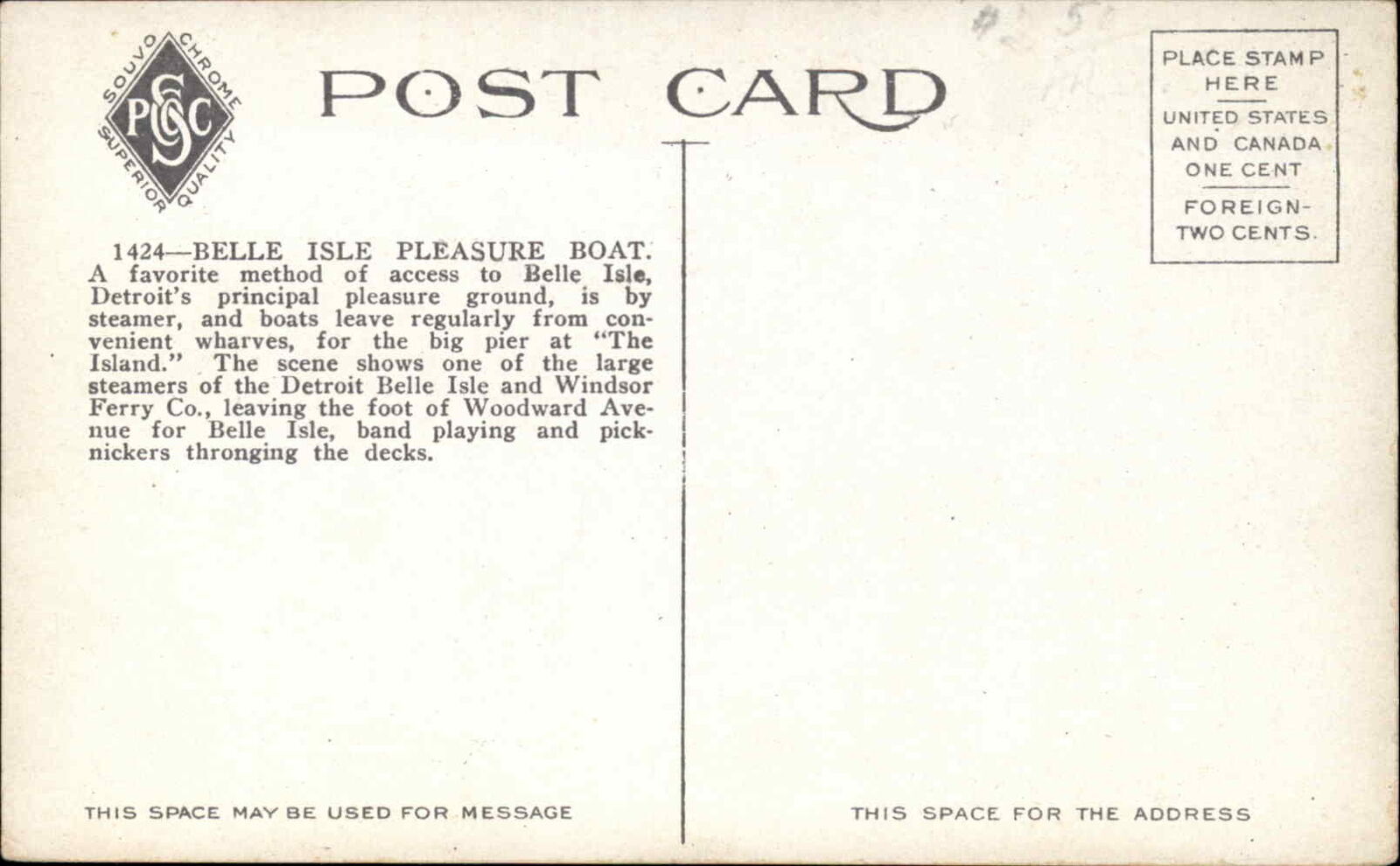 DETROIT MI Belle Isle Steamer Steamship c1910 Postcard