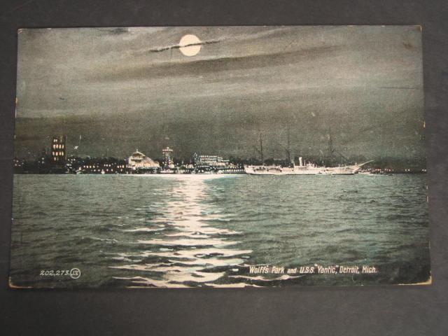 DETROIT MICH Wolffs Park & Steamship at Night c1910 PC