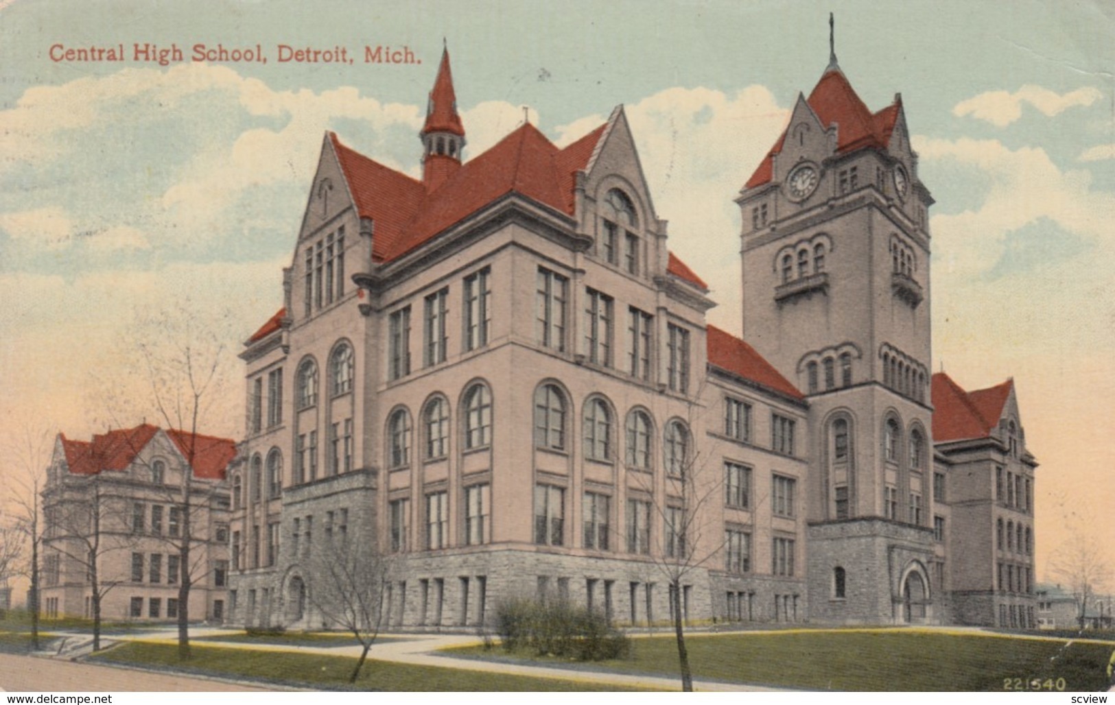 DETROIT, Michigan, 1916; Central High School :: Postcard, 3.5 by 5.5, Litho