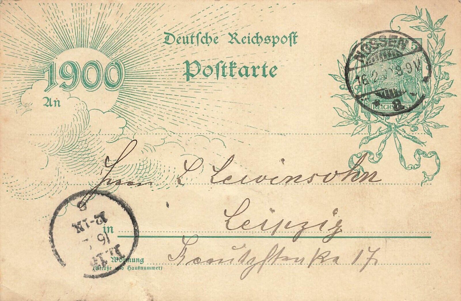Deutsche Reichspost Postkarte to E Levinsohn Leipzig~1900 Germany Postcard