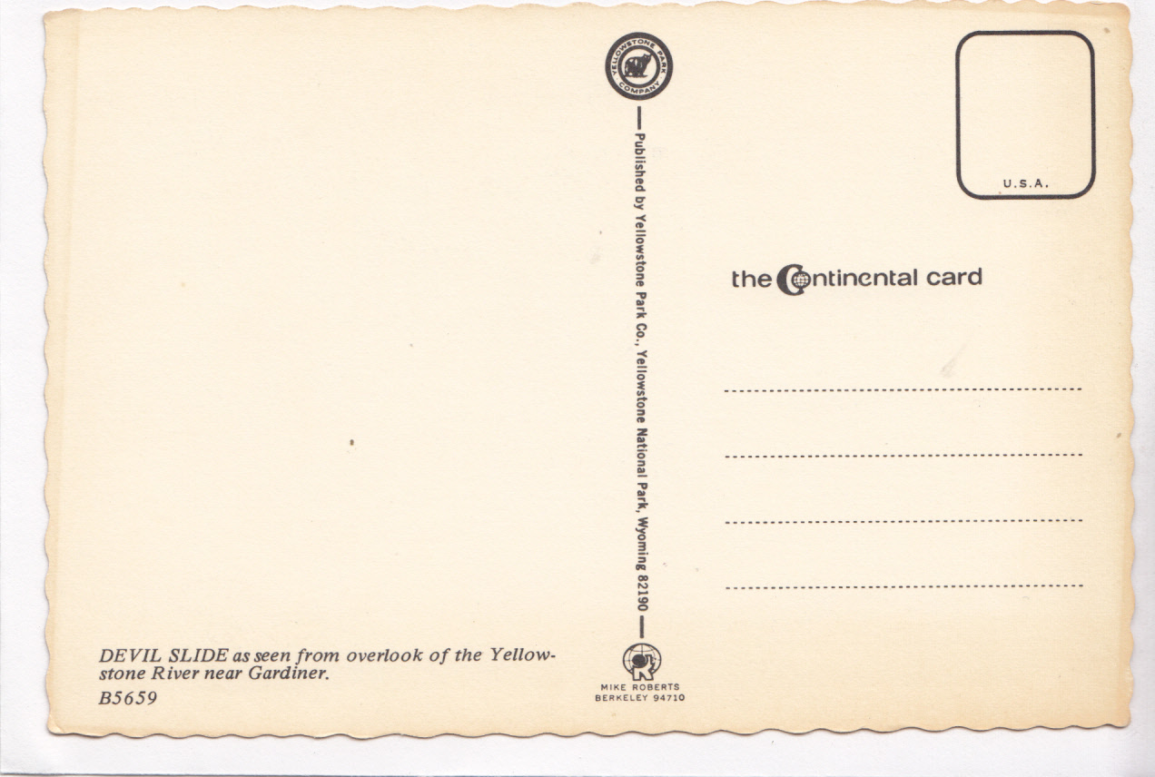 22540 Devil Slide, seen from Yellowstone River, Wyoming, unused Postcard Condition: very good.