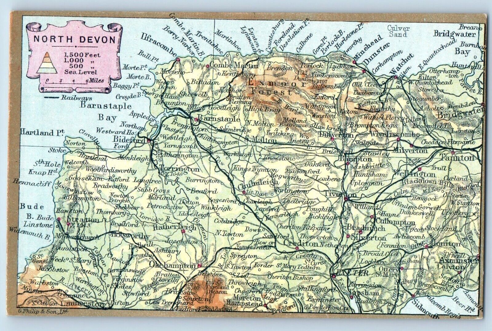 Devon England Postcard North Devon Map View c1950's Unposted RPPC Photo