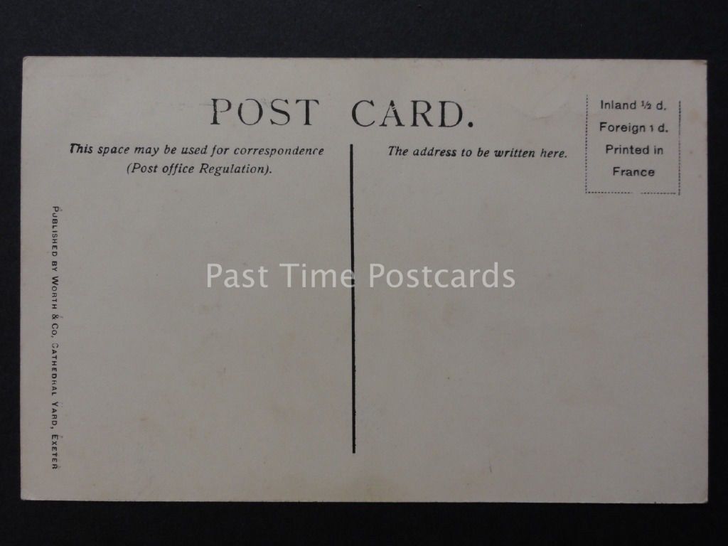 Description Click to Enlarge Click to Enlarge Postcard Details: Publisher - Worths & Co Cathedral Yard, Exeter Postcard Number - No. 31 Postcard Condition - (VG) Very Good - Postally unused - Additional Information - Postal Details - Please see detail on the photographic image or contact us for details. Abbreviations: (UB) Undivided Back / (RP) Real Photo Postcards (PM) Postmark Interest / (CDS) Circular Datestamp / (SQ.C) Squared Circle / (DUP) Duplex Postmark Combined Postage Please read the 'Combined Postage Discounts for Multiple Purchases' section on the front page of our Hip store for full details on how to purchase items using your 'BASKET' Welcome Welcome to our postcard and social history emporium. At Past Time Postcards we stock a comprehensive range of British antique and vintage topographical postcards. We aim to make your shopping experience enjoyable and stress free. We list our postcards topographically and by subject matter to make it easier for you to locate the items that interest you. Feel free to brouse and explore at your leisure, however if you can't find what you are looking for or need any support please don't hesitate to contact us. Postage & Packaging Postage rates are calculated to include postage and packaging. All single postcards are posted with protected with plastic sleeve in a board backed envelope for added security and protection. Small parcels are securely posted in protected jiffy style padded envelopes. Payment Methods Our preferred method of payment is through Paypal for all purchases. UK CUSTOMERS: can make payment by Paypal, Personal Cheque or Postal Order. PLEASE NOTE: Credit cards included in PayPal payment method inc Visa, MasterCard, American Express, Discover. FOR CUSTOMERS OUTSIDE THE UK: we can only accept Paypal as method of payment. PLEASE NOTE: Credit cards included in PayPal payment method inc Visa, MasterCard, American Express, Discover. All successful purchases should be paid for within 5 days, unless you are waiting for other items to finish to combine the postage, a courteous e-mail to that effect will suffice. Items will be dispatched upon receipt of cleared funds. NOTE: Please contact us if you have any questions, We are always pleased to help and answer any questions you may have. Kind regards - Past Time Postcards 100% Satisfaction If in the unlikely event you are unhappy with your item you have purchased on the basis that the postcard was incorrectly described or graded we do offer a complete refund less the cost of postage and packaging once the item is returned to us. Postcard Condition & Grading Information (M) Mint : Like new. Almost perfect. (EX) Excellent : No obvious flaws. Sharp corners, clean and if postally used, writing does not detract from appearance. (VG) Very Good : Minor defects such as album marks, signs of age and handling acceptable that do not detract from a visually pleasing card. (G) Good : Noticeable defects, handling and wear apparent. Slight creasing and minor postal damage not detrimental to image acceptable in this category. (F) Fair : Obvious creasing, staining, small tears or damp damage evident. Significant edge or corner damage. Just about in a collectable state. (P) Poor : Incomplete, image seriously affected. Payment Details............ UK buyers: Payment accepted by Paypal, Cheque and Postal Orders. Non-UK buyers: Payments accepted by Paypal method only. PLEASE NOTE: Credit cards included in PayPal payment method inc Visa, MasterCard, American Express, Discover. Making a Payment............. Payment appreciated within 5 days unless you are waiting for other items to finish. Please email me to let me know if this is a problem. I am always willing to help or answer any question you may have. Kind regards - Past Time Postcards Shipping Terms........... Multiple purchases: Postage costs will be combined - please wait for the invoice to arrive before sending payments. Just one of inkFrog's Creations inkfrog terapeak i000000 inkFrog Analytics