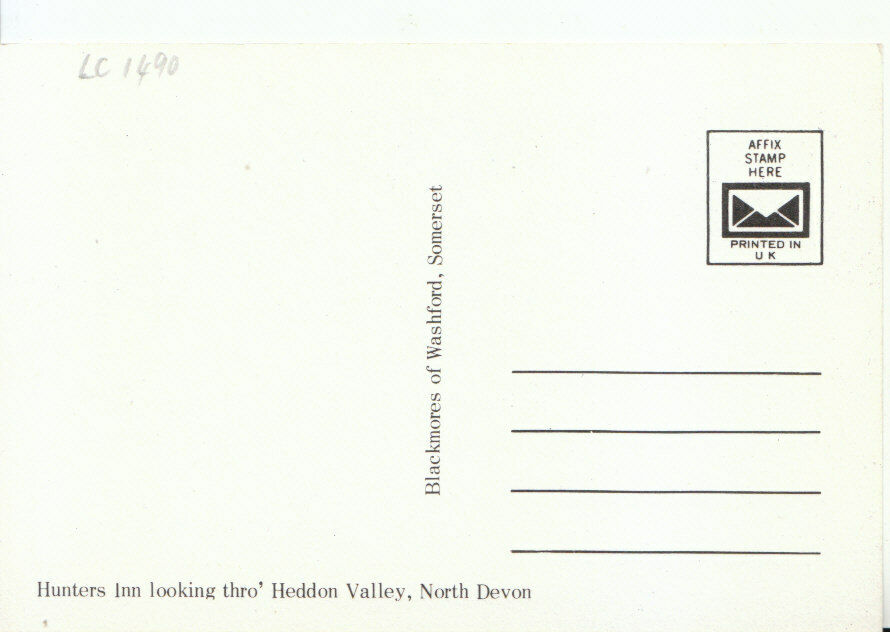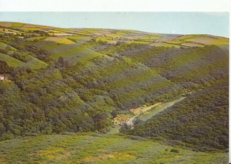 Postcard Description: Devon Postcard - Hunters Inn Looking Thro' Heddon Valley