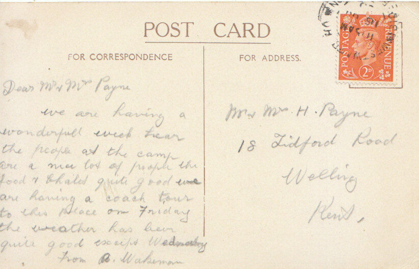 Genealogy Information: Used - Mr & Mrs H Payne, 18 Tidford Road, Welling, Kent