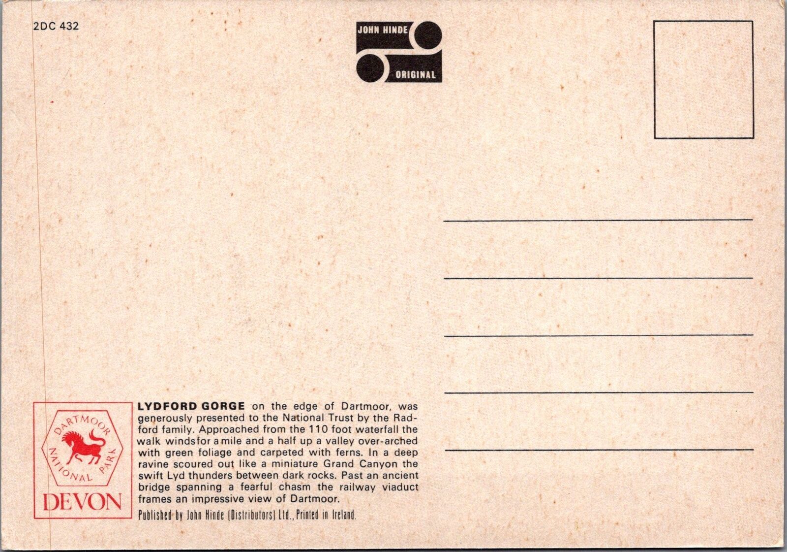 This is a Devon Postcard - Lydford Gorge, Lydford, Nr Tavistock, South Devon RR16617Publisher: John HindePostcard size: ContinentalPostcard defect(s): Please also use the image magnifier to make your own assessment on the condition. Please ignore any lines caused by the scanner.When possible all of our postcards will be posted to you inside a collectable plastic postcard sleeve and a board backed envelope which will be marked 'Please do not bend'.The 'Mo's Postcards' watermark does not appear on the actual postcard'.Mo's Ref: Devon Postcard - Lydford Gorge, Lydford, Nr Tavistock, South Devon RR16617 Listing and template services provided by inkFrog