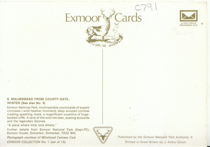 Mo's Postcards Postcard Description: Devon Postcard - Malmsmead from County Gate - Winter - Showing Sheep Genealogy: Defects: Very very slight knock to top left hand corner Postage & Payment: For U.K residents the quoted P & P fee is for any number of postcards purchased at one time. Happy to quote for non UK residents. For multiple purchases please wait for an invoice Listing and template services provided by inkFrog