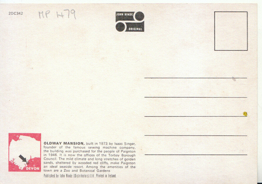 Mo's Postcards Postcard Description: Devon Postcard - Oldway Mansion - Paignton Genealogy Information: Defects: Postage & Payment: For U.K residents the quoted P & P fee is for any number of postcards purchased at one time. Happy to quote for non UK residents. For multiple purchases please wait for an invoice Listing and template services provided by inkFrog