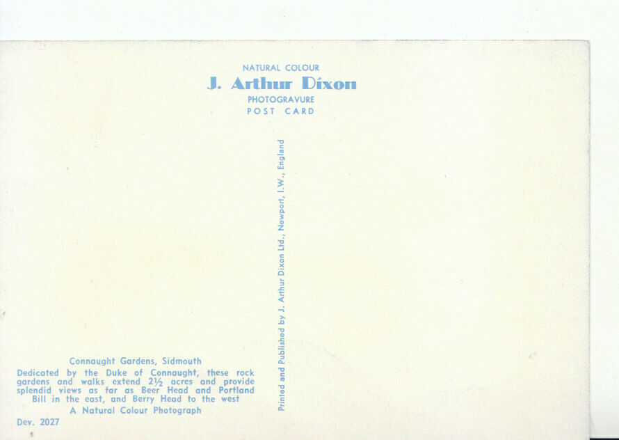 Devon Postcard - Sidmouth, Connaught Gardens, J.Arthur Dixon 8419A