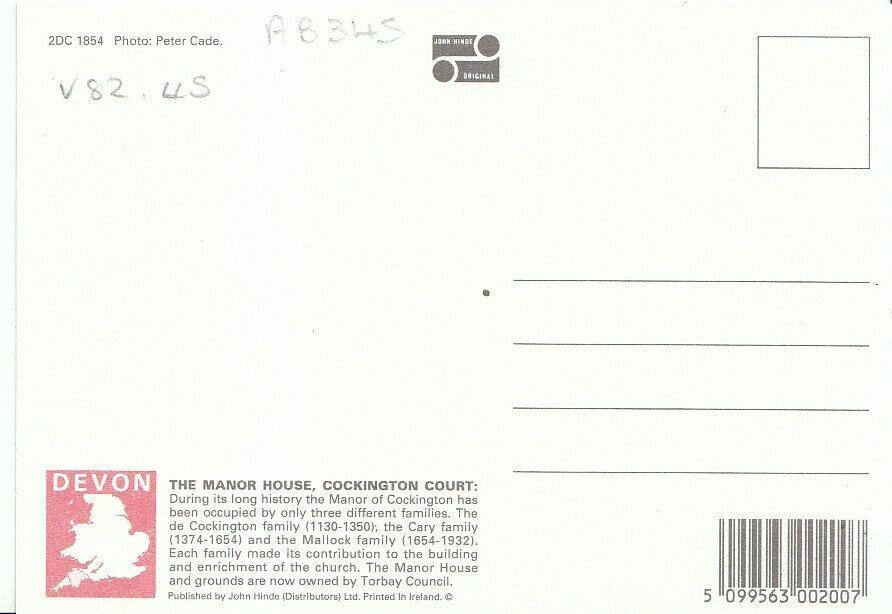 Mo's Postcards Title: Devon Postcard - The Manor House - Cockington Court Publisher: As seen in the scanned image Postally Used: Unused Defect(s): Postage & Payment: For U.K residents the quoted P & P fee is for any ... Read More