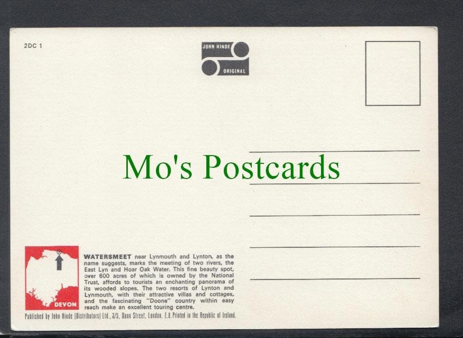 Postcard showing Watersmeet, Near Lynmouth, Devon.Mo's Postcards offers for sale a postcard of Watersmeet, Near Lynmouth, Devon.Continental size postcard. Published by John Hinde.Any significant defects will be noted within this descriptive text.Please study the scanned images carefully to form your own opinion of the condition. All of Mo's Postcards are protected inside a plastic sleeve and are shipped inside a board backed envelope which is marked please do not bend. Mo's Ref No: SW4778