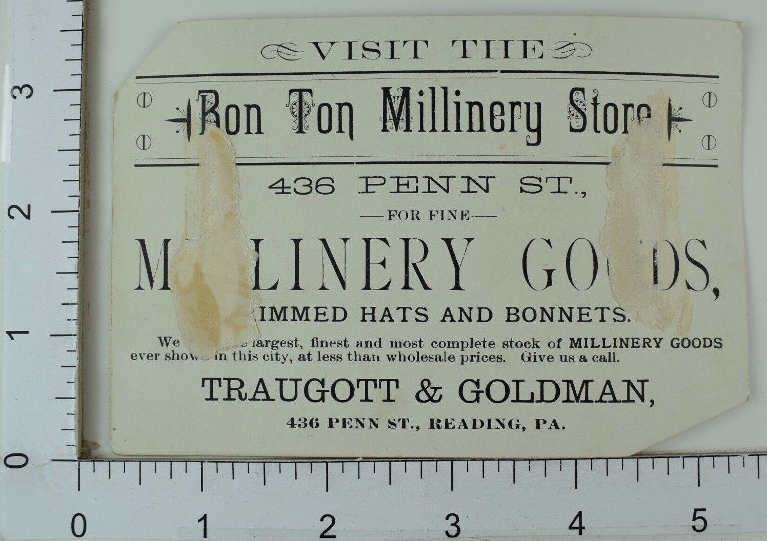 Up for auction is an original vintage Victorian trade card in decent condition for its age. Please see the images of the actual item above for a better idea of the condition. The winner will pay postage and tracking, which is included in the shipping total. The packed cards will weigh around three and a half ounces, as I pack with thick cardboard to assure the card arrives safely. I am always happy to combine shipping whenever possible. Check out my other items! Be sure to add me to your favorites list! Sign up for my email newsletters by adding my Hip Store to your Favorites. Please contact me with any issues prior to leaving negative/neutral Feedback or low detail ratings, as I will always do my best to solve any problems that may come up!