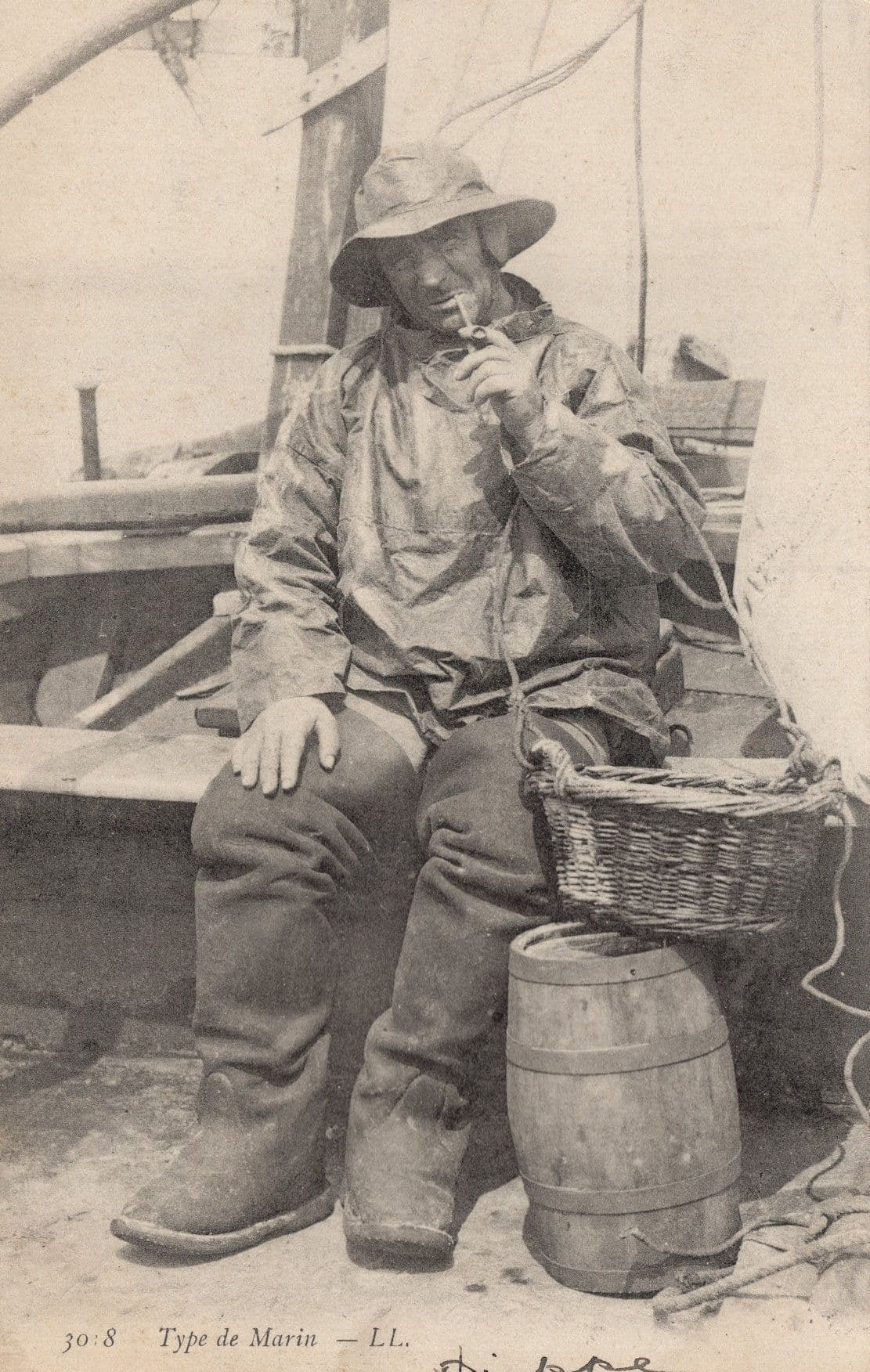 tp352 Antique postcard of a Dieppe fisherman unused and bar light places and mildly aged this is great condition (ex minus) - there is a small notation at bottom of the card stating this a Dieppe fisherman (from a Dieppe collection too) (please note my scanner does not show you quite the full card - my apologies) - dates around 1905 - postally unused