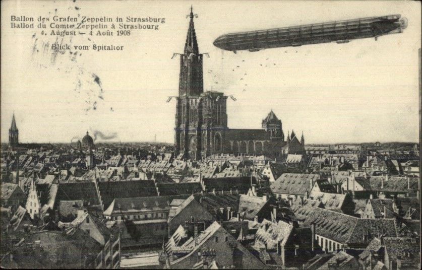 Dirigibile Airship Zeppelin Strassburg August 1908 Postcard