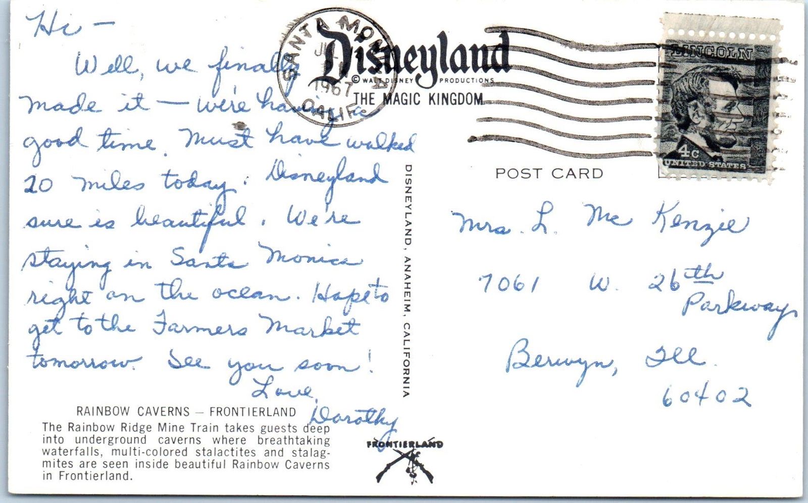 DISNEYLAND, CA California MINE TRAIN RAINBOW CAVERNS 1967 Postcard
