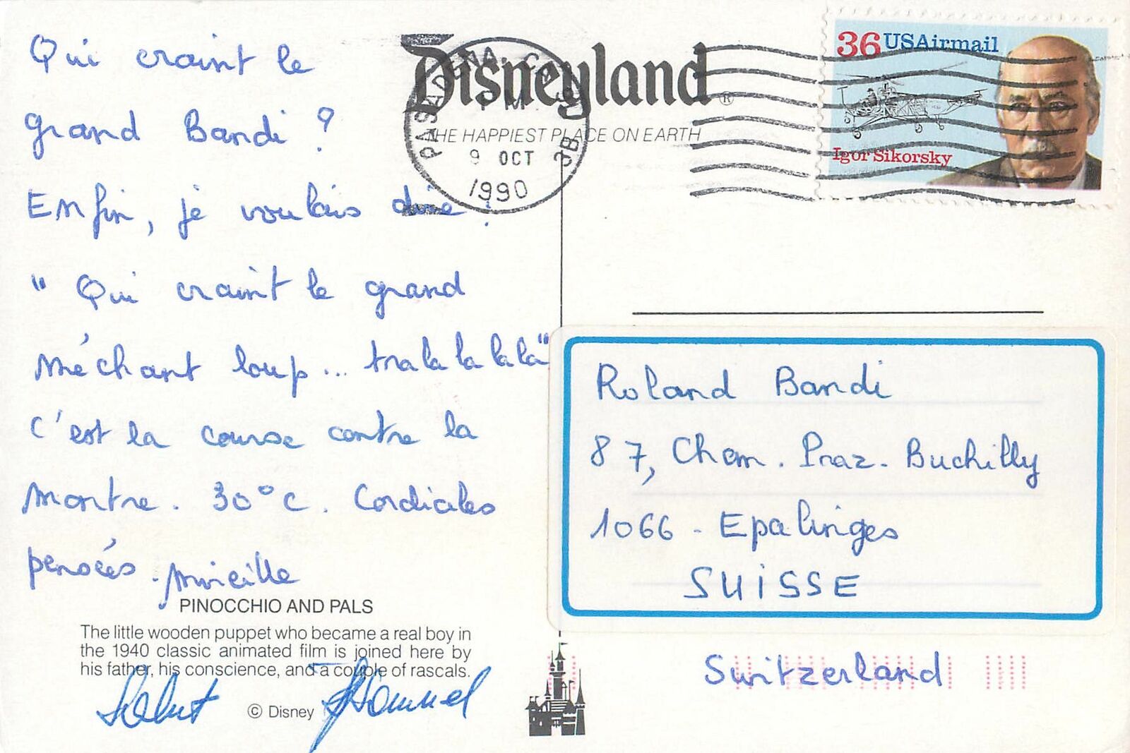 Disneyland Pinocchio and Pals Post card