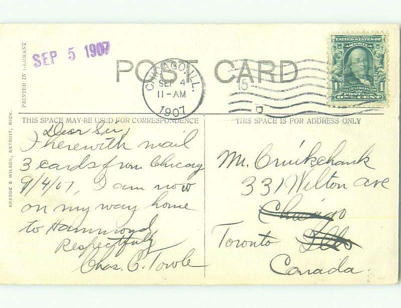 Divided Back AUDITORIUM HOTEL Chicago Illinois IL HQ5461