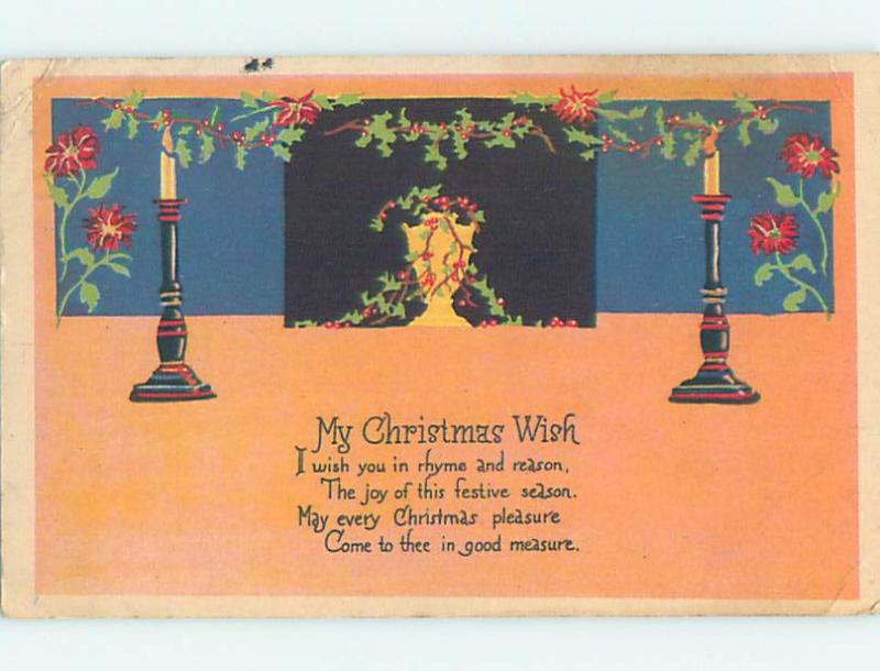 Divided-Back christmas TWO CANDLES BURNING ON CANDLE STICKS o3976