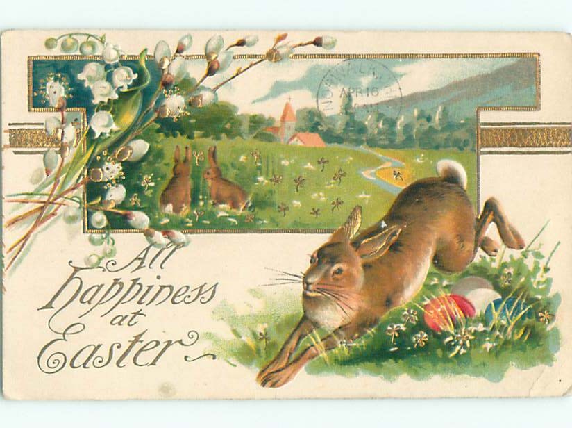 Divided-Back EASTER BUNNY RABBIT SCENE Cute Postcard AA1149
