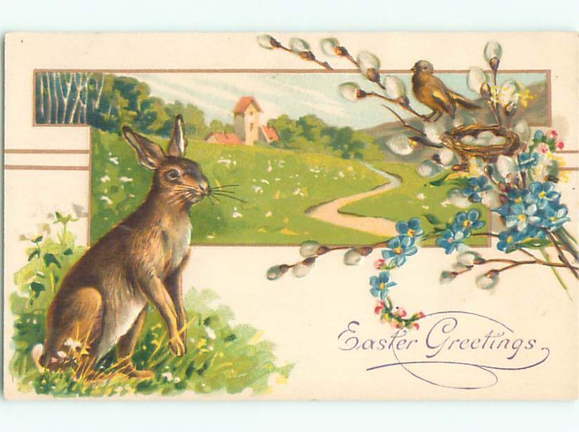 Divided-Back EASTER BUNNY RABBIT SCENE Cute Postcard AA1150