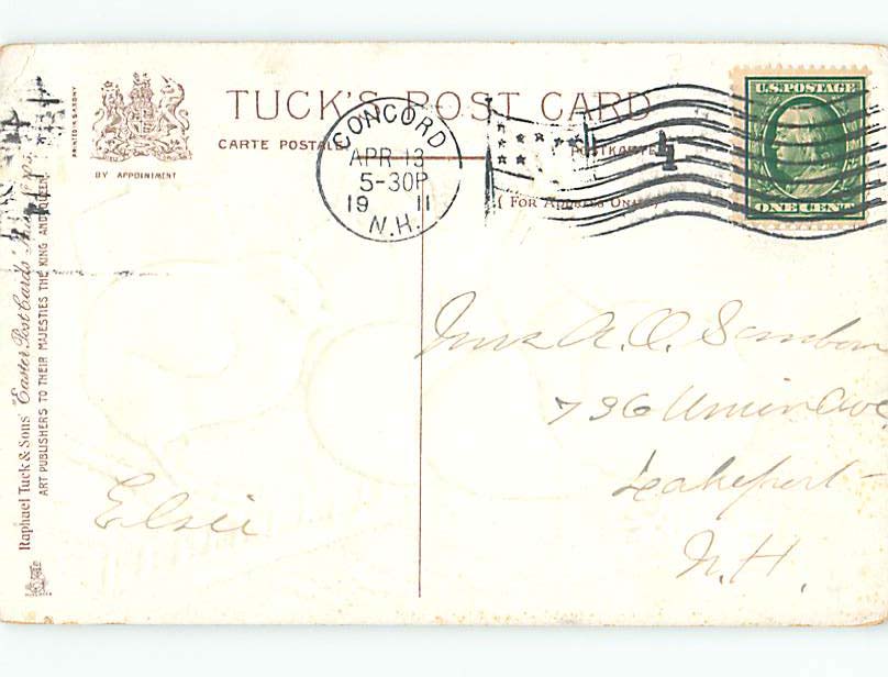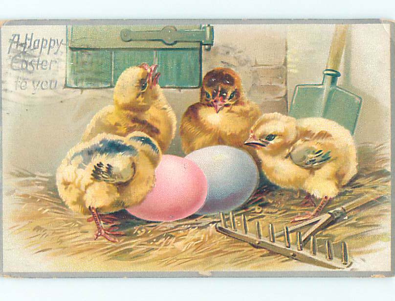 Divided-Back Easter Tuck CHICKS WITH COLORED EGGS & RAKE & SHOVEL o6488