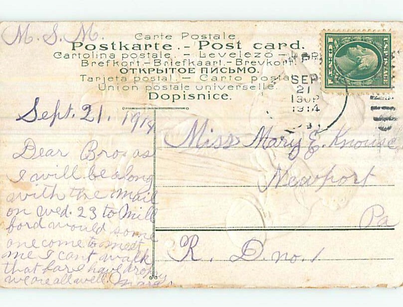 Divided-Back GIRL WITH PINK FLOWERS AND BASKET BESIDE GUY WITH PIPE o7233