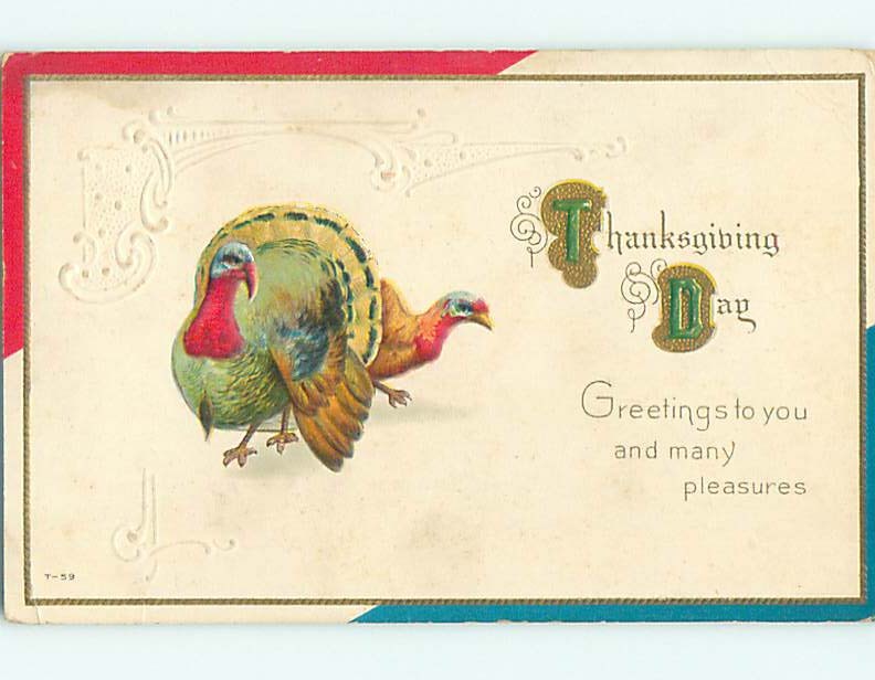 Divided-Back thanksgiving TWO COLORFUL TURKEYS r3794