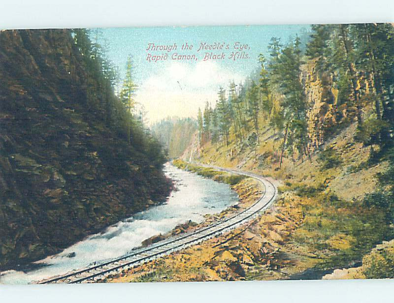 Divided-back TRAIN TRACK BY RIVER Black Hills - Rapid City SD AD7680