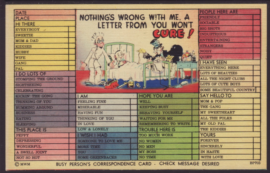 Doctor,Comic Postcard Unused Linen divided back. Near Mint  Grading Terms MINT - Perfect in every way, regardless of age. Rarely seen, may not exist. NM - Near Mint, you have to look closely to see that ... Read More